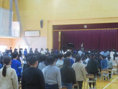卒業式に向けて着々と準備が進んでいます。全校での練習もとてもよく頑張っています。国歌や校歌の響き、敬礼や座っている時の姿勢、立ったり座ったりするタイミングなど、卒業式をよりよいものにしようと頑張って練習しています。