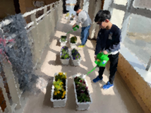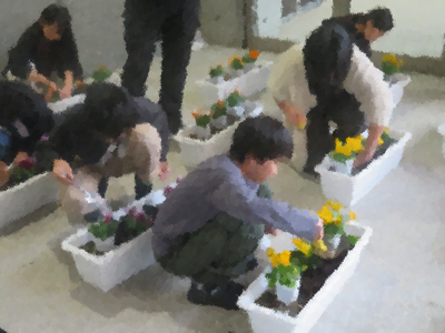 卒業式の花は、毎年飼育栽培委員会が育てています。花を植えてから卒業式の日まで水やりを欠かさず、時々肥料をあげるなどするなどお世話を頑張っています。今年は、大雪に遭い、雪にプラウンターが埋まるなどしましたが、委員会の児童が雪をかき分けて温かいところに移してくれました。児童の思いが詰まった花が卒業式に並びます。